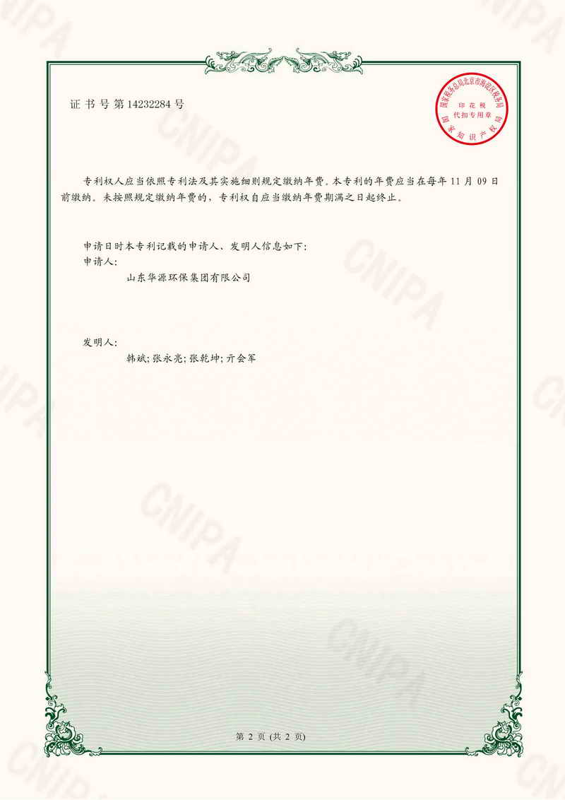 專利證書一種廢鋁灰生產(chǎn)速凝劑的反應(yīng)物混合設(shè)備
